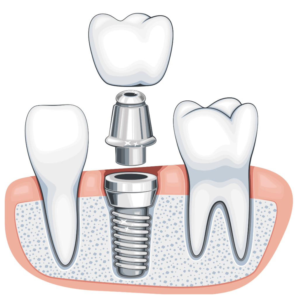 Abutment: the “connector” that attaches to the implant post and sits just above the gumline. It holds the replacement tooth securely in place.